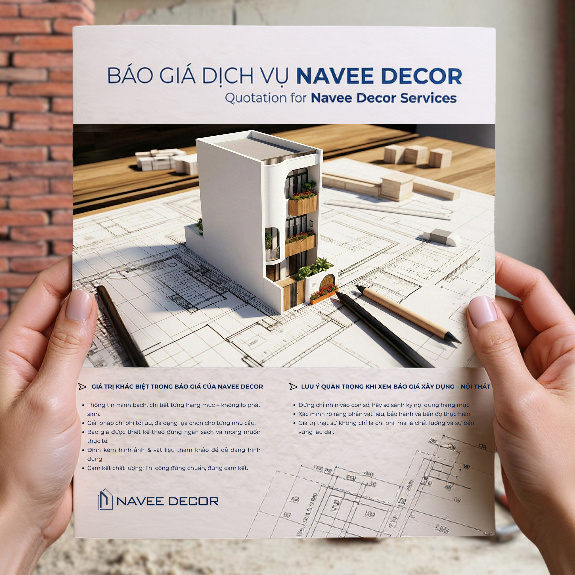 Nếu anh chị đang cân nhắc xây dựng và mong muốn có một lộ trình rõ ràng ngay từ đầu, NAVEE DECOR sẵn sàng đồng hành để mang đến giải pháp thiết kế minh bạch, đúng nhu cầu và phù hợp ngân sách.